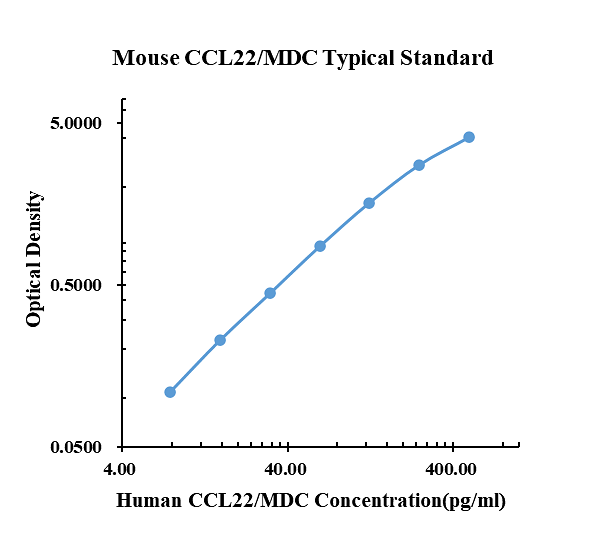 巨噬细胞源性趋化因子 (MDC),也称为刺激 T 细胞趋化蛋白 (STCP-1) 和 ABCD-1,现在命名为 CCL22,是一种最初从单核细胞源性巨噬细胞克隆中分离出来的 CC 趋化因子。在氨基酸串行水平上,MDC 与其他 CC 趋化因子家族成员的同一性低于 35%。人 MDC 在树突状细胞、巨噬细胞和活化的单核细胞中表达。此外,在胸腺、淋巴结和阑尾组织中也检测到MDC表达。在氨基酸串行水平上,小鼠和人类MDC有64%的同一性和83%的相似性。